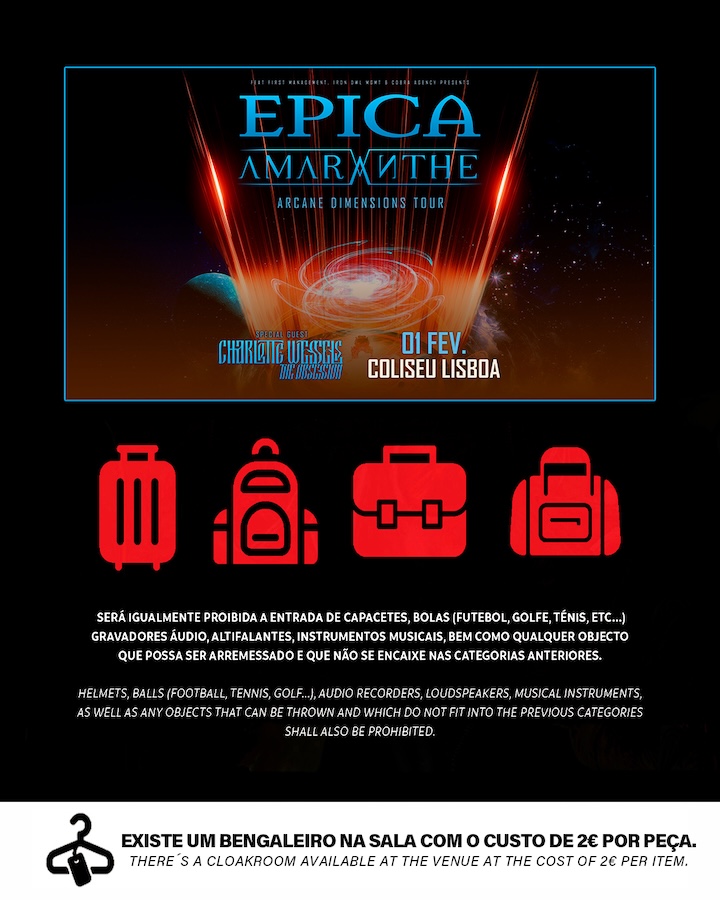 É já este domingo que os Epica, Amaranthe e Charlotte Wessels’ The Obsession chegam a Portugal para um concerto no Coliseu dos Recreios em Lisboa.
